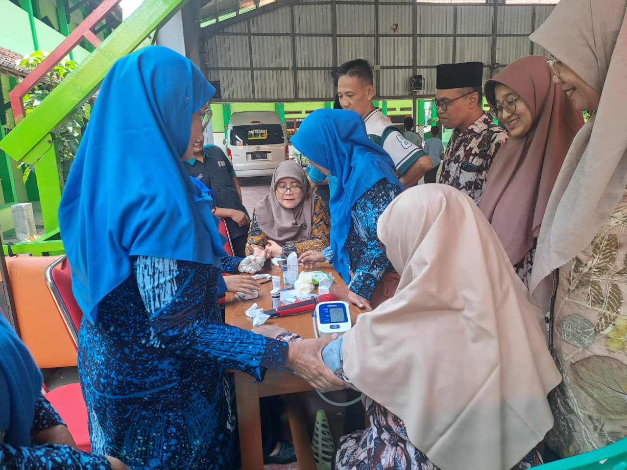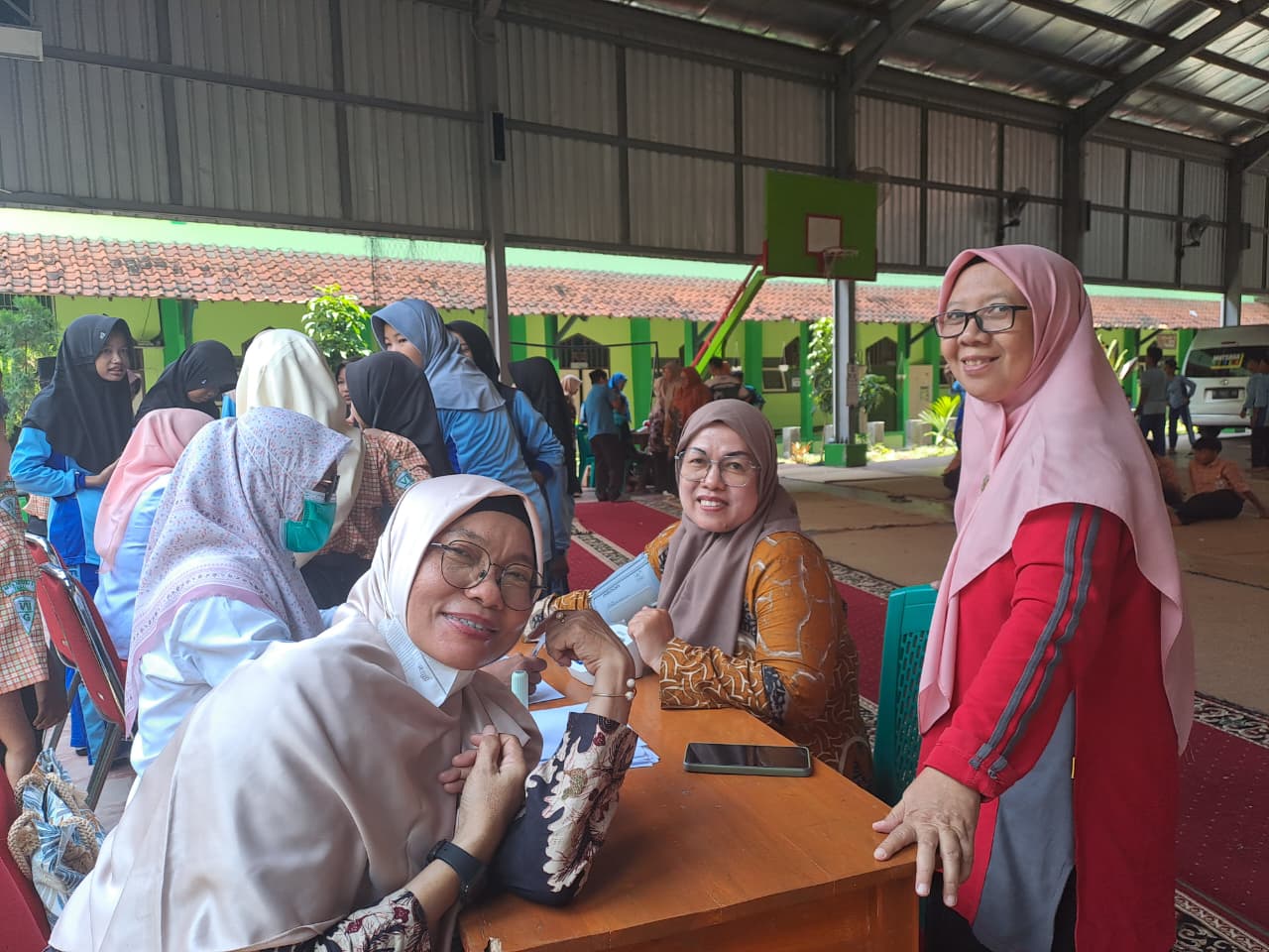 Lebaksiu — Setelah seluruh siswa kelas VII MTsN 3 Tegal menjalani rangkaian Pemeriksaan Kesehatan Gratis (PKG) dari tim Puskesmas Lebaksiu, kegiatan berlanjut dengan antusiasme tinggi dari para guru dan tenaga kependidikan yang turut memanfaatkan kesempatan tersebut untuk memeriksakan kondisi kesehatan mereka. Pemeriksaan dilakukan di indoor madrasah pada Rabu (8/10/2025).