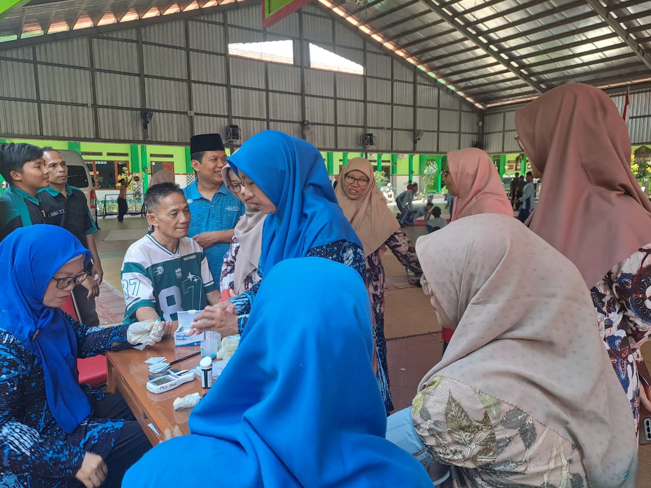 Kegiatan lanjutan ini dilakukan secara spontan dan penuh semangat. Beberapa guru terlihat mendatangi meja pemeriksaan untuk melakukan pengecekan tekanan darah (tensi), kadar gula darah, dan kadar hemoglobin (HB). Pemeriksaan ini dilakukan oleh petugas kesehatan yang sama, dengan peralatan medis yang telah disiapkan sebelumnya.