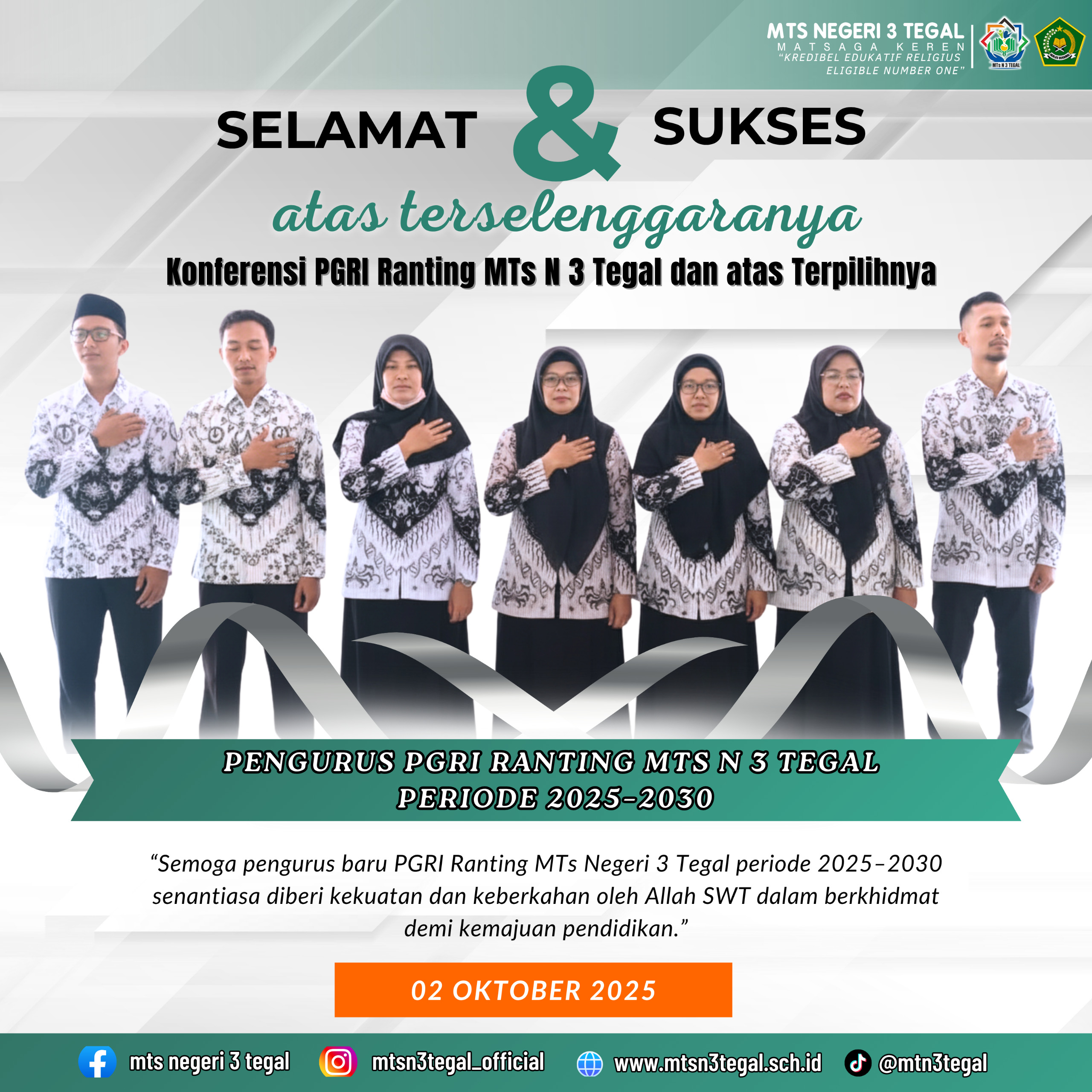 Susunan kepengurusan baru PGRI Ranting MTsN 3 Tegal periode 2025–2030 adalah sebagai berikut: