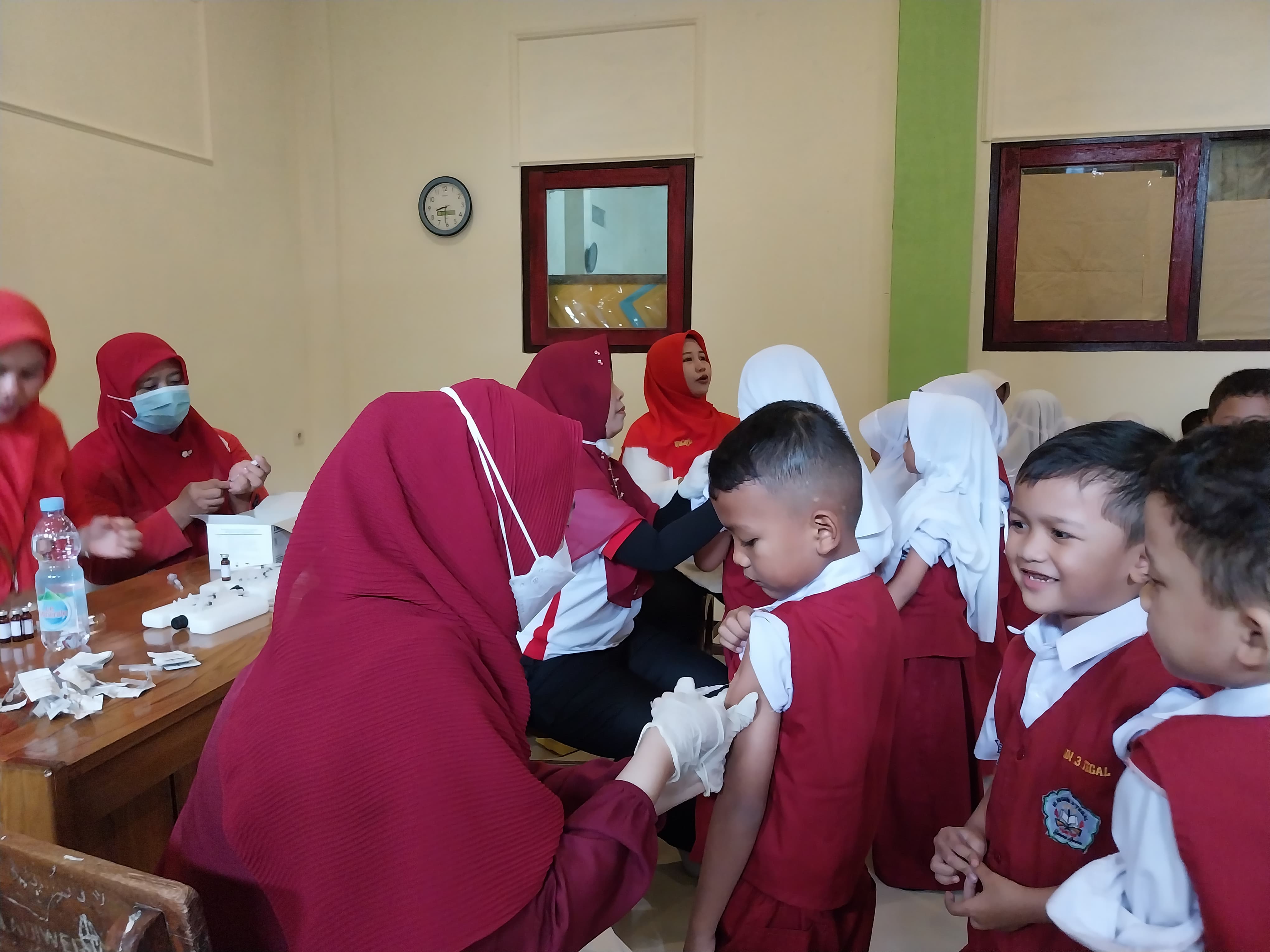 Pelaksanaan imunisasi berlangsung di ruang perpustakaan yang sudah disiapkan oleh pihak madrasah. Murid-murid tampak antusias meskipun sebagian ada yang merasa tegang. Wali kelas kelas 1 turut memberikan pendampingan agar anak-anak merasa lebih tenang saat disuntik. Beberapa siswa bahkan tampak tersenyum lega, tetapi juga ada yang menangis setelah selesai menjalani imunisasi.