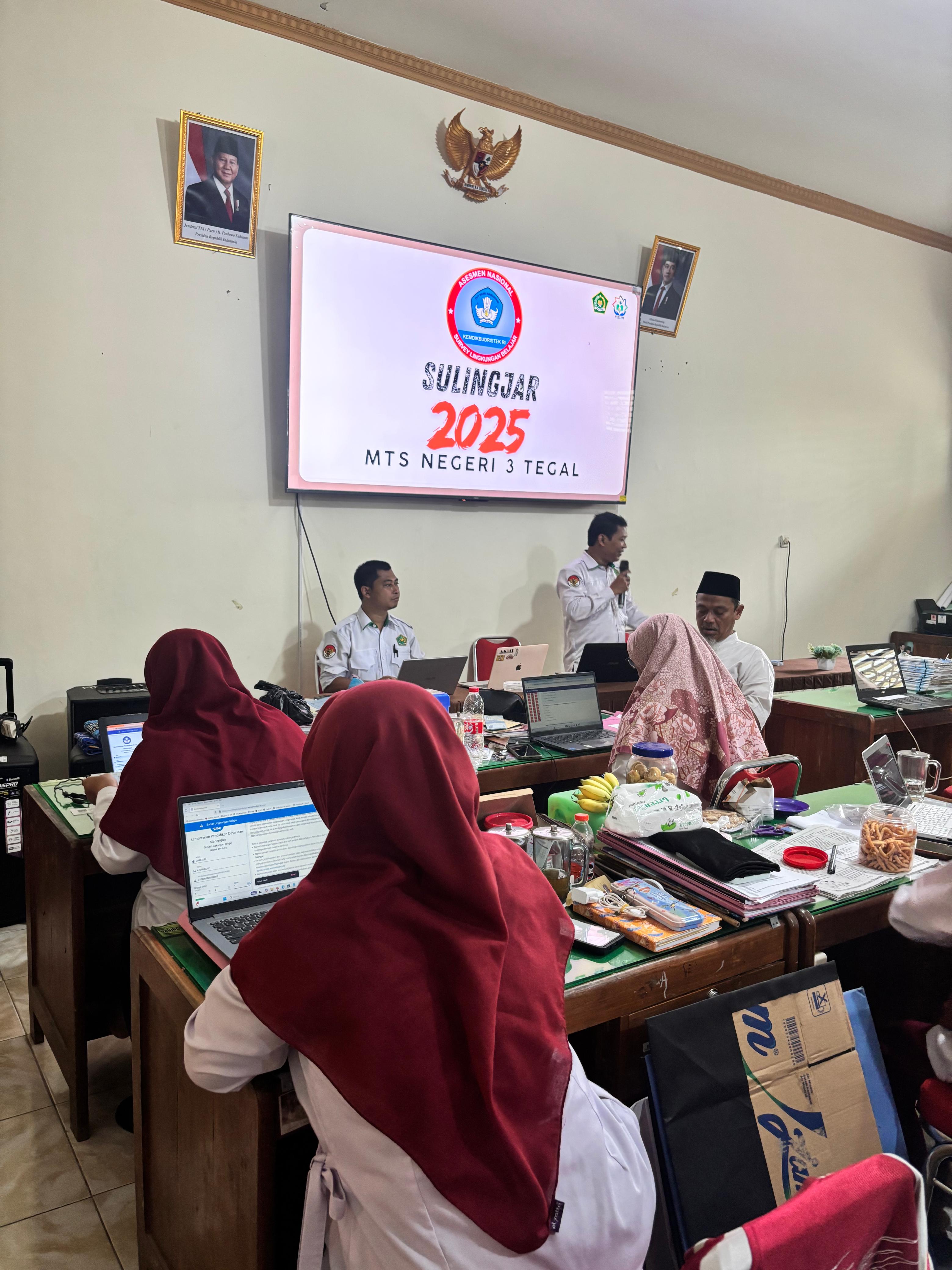 Lebaksiu – Pada hari ini, Selasa (7/10/2025) guru-guru MTsN 3 Tegal melaksanakan kegiatan Survei Lingkungan Belajar (Sulingjar) yang berlangsung di Ruang Guru setelah pelaksanaan shalat Dzuhur berjamaah. Suasana kegiatan terasa hangat dan akrab, diawali dengan makan soto bersama sebagai bentuk kebersamaan dan mempererat silaturahmi sebelum para guru memulai pengisian survei.